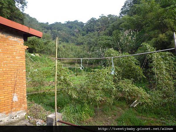 農舍左邊有鐵絲網,爬上去看看有無入口。